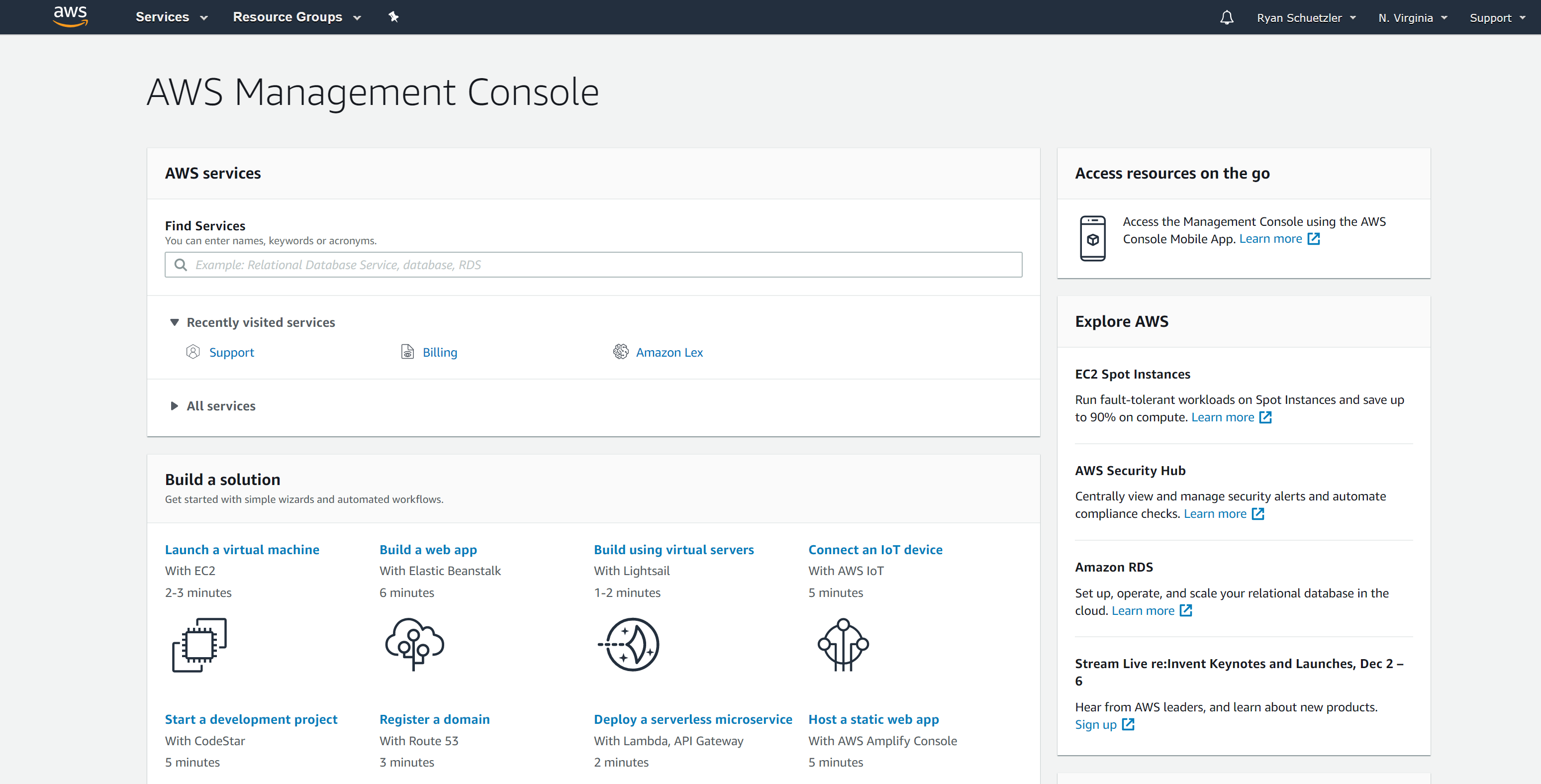There are so many services on AWS that you could play around with. With the starter account you won’t have access to everything, but you’ll be able to play around with a lot of the services that would be needed to create a website. Also, with the starter account you can use whatever services you want and when the credits run out, your services will shut down, so you won’t be charged.