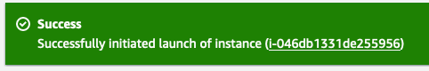 - In the green bar that appears after you click the button, click on the instance ID. If you missed clicking on the instance ID there, you can always get to the instance list by clicking "Instances" in the left side menu in the EC2 section of the Management Console.